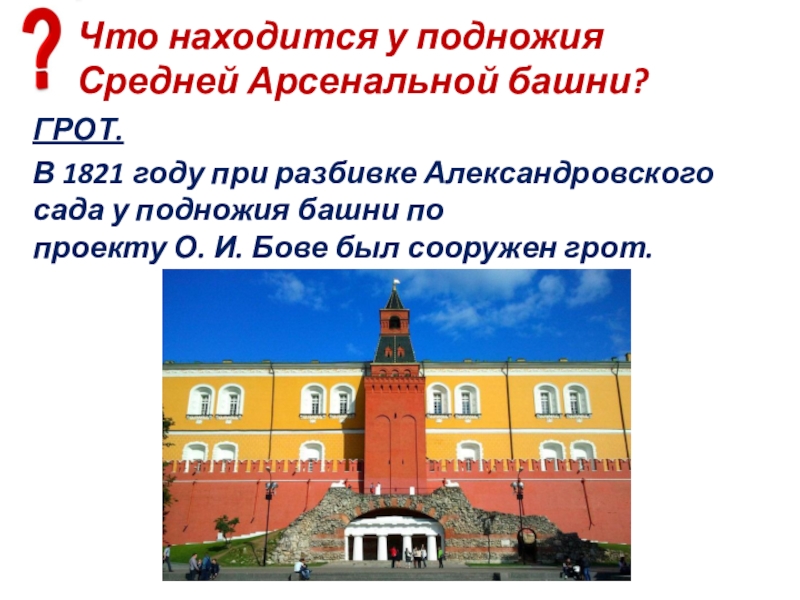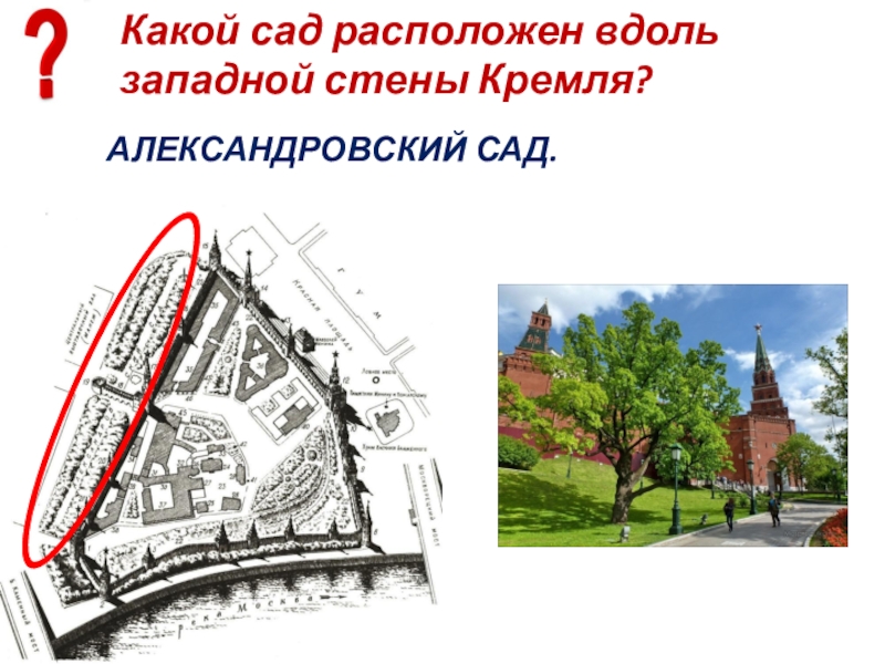 Слайд 11Какой сад расположен вдоль западной стены Кремля?