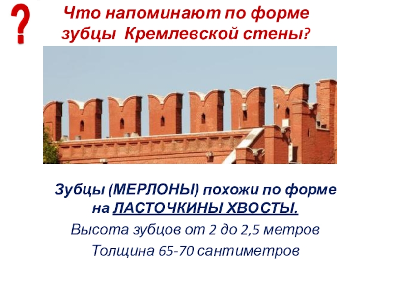 Слайд 5Что напоминают по форме зубцы Кремлевской стены?