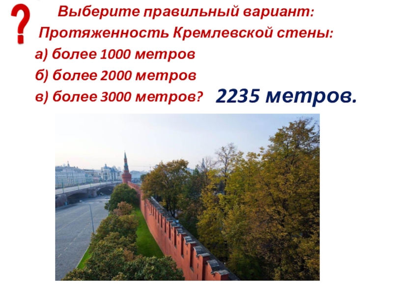 Протяженность Кремлевской стены: