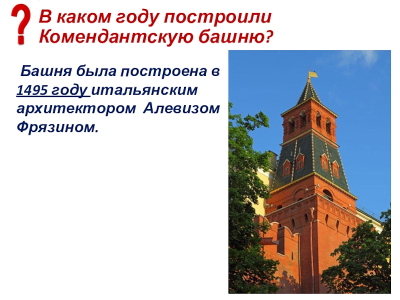 Слайд 80В каком году построили Комендантскую башню?