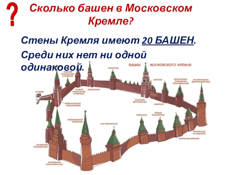 Слайд 7Сколько башен в Московском Кремле?