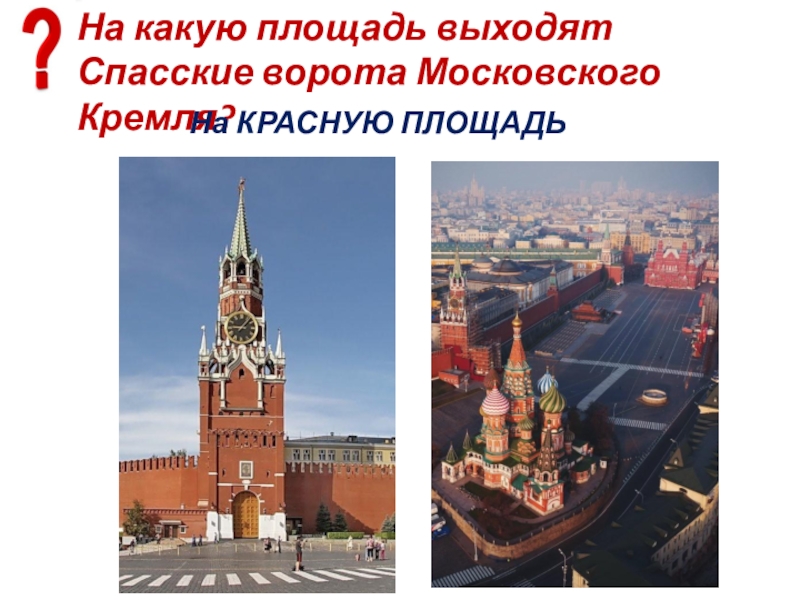 Слайд 10На какую площадь выходят Спасские ворота Московского Кремля?