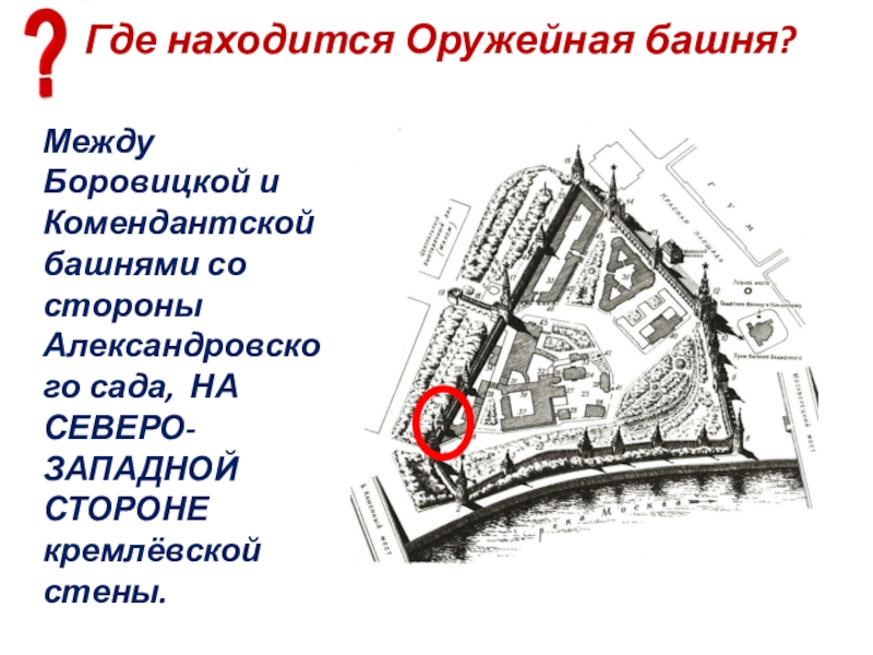 Слайд 77Где находится Оружейная башня?