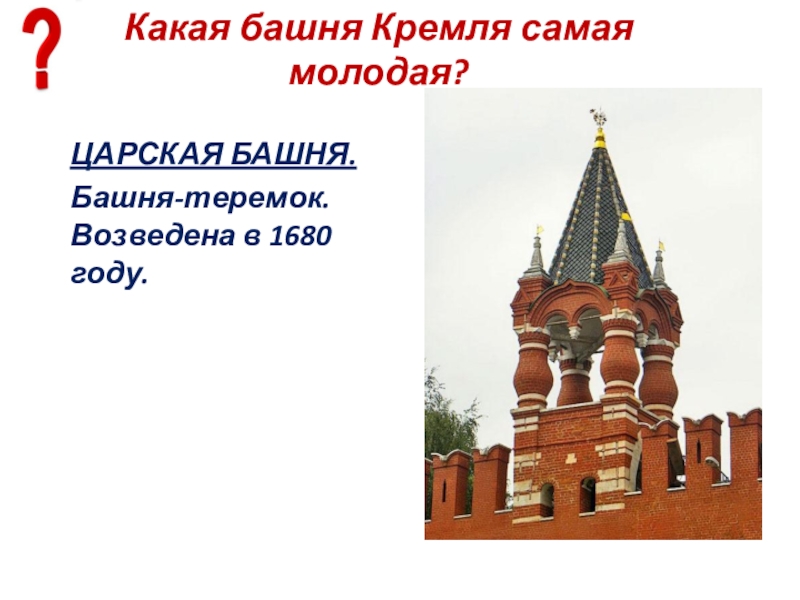 Слайд 24Какая башня Кремля самая молодая?