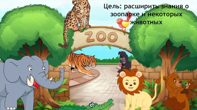 Слайд 2Цель: расширить знания о зоопарке и некоторых животных