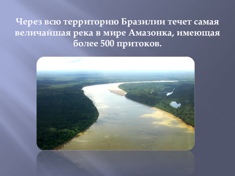 Слайд 5Через всю территорию Бразилии течет самая величайшая река в мире Амазонка,