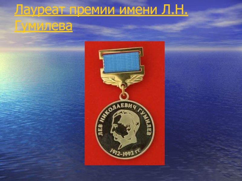Слайд 42Лауреат премии имени Л.Н.Гумилева