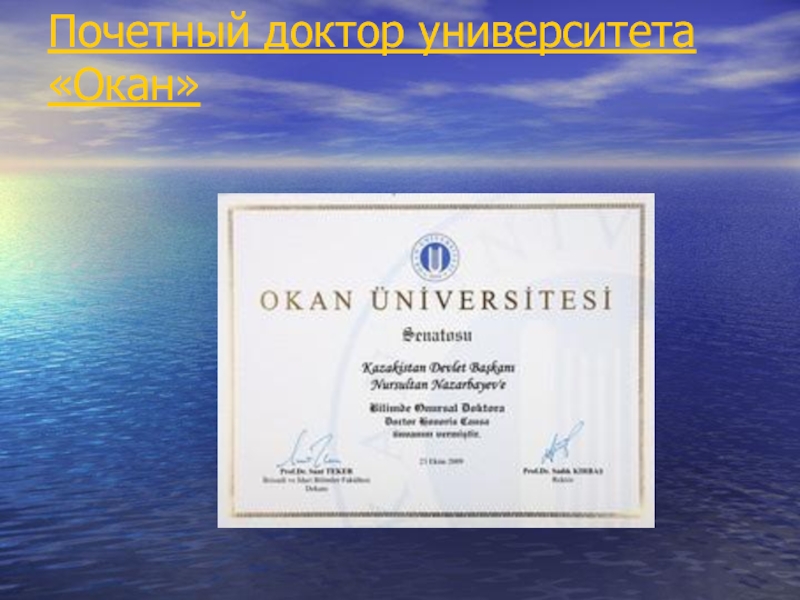 Слайд 35Почетный доктор университета «Окан»