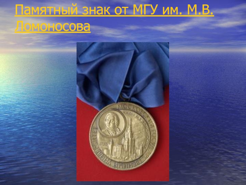 Слайд 45Памятный знак от МГУ им. М.В.Ломоносова