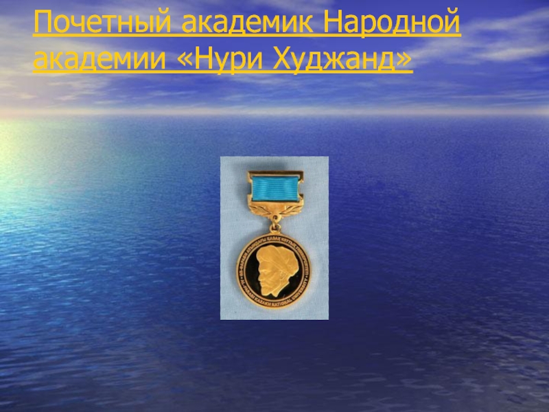 Слайд 46Почетный академик Народной академии «Нури Худжанд»