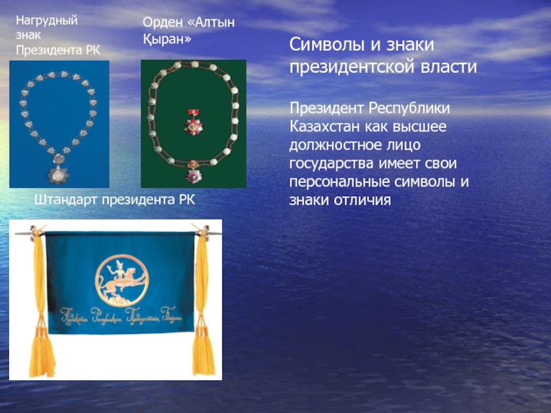 Нагрудный   знак        Президента РК Штандарт президента РКОрден «Алтын Қыран»Символы и