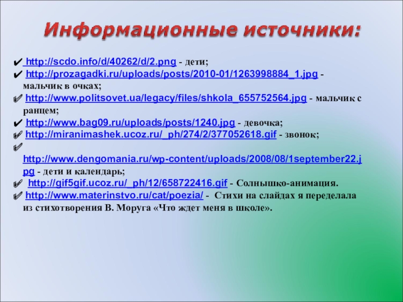 Это сайт презентаций, где можно хранить и обмениваться своими презентациями, докладами, проектами, шаблонами в формате PowerPoint с другими пользователями. Мы помогаем школьникам, студентам, учителям, преподавателям хранить и обмениваться учебными материалами.