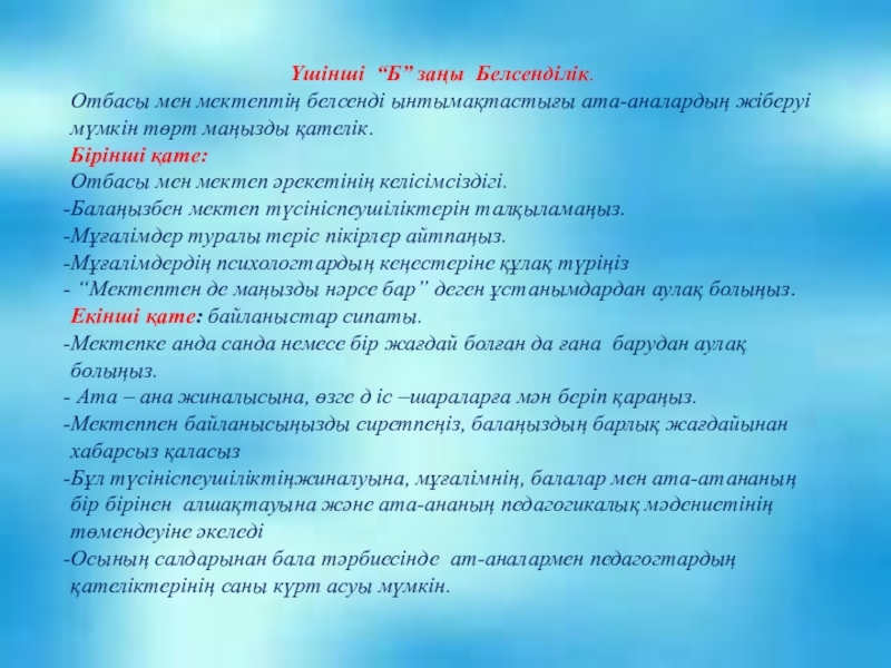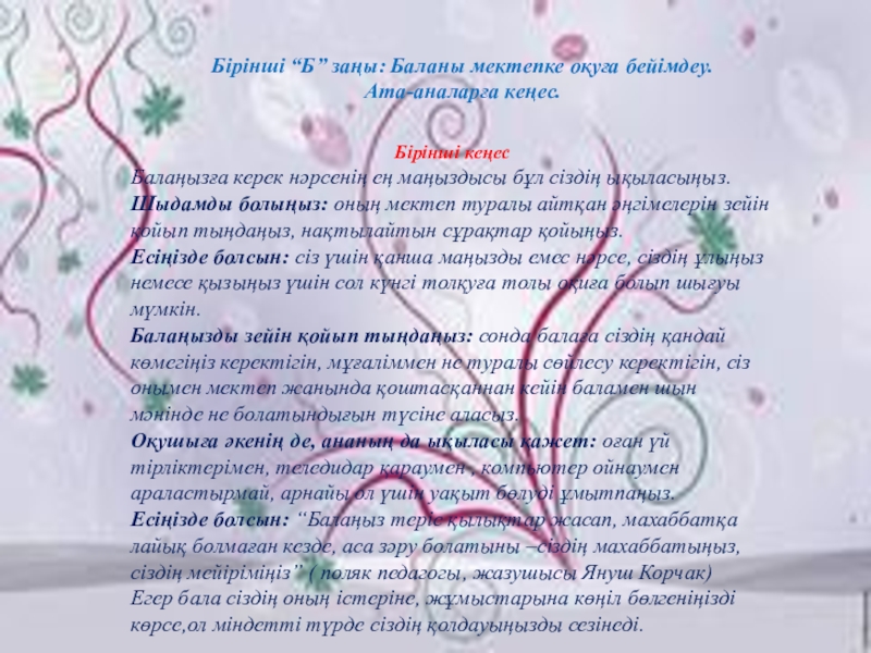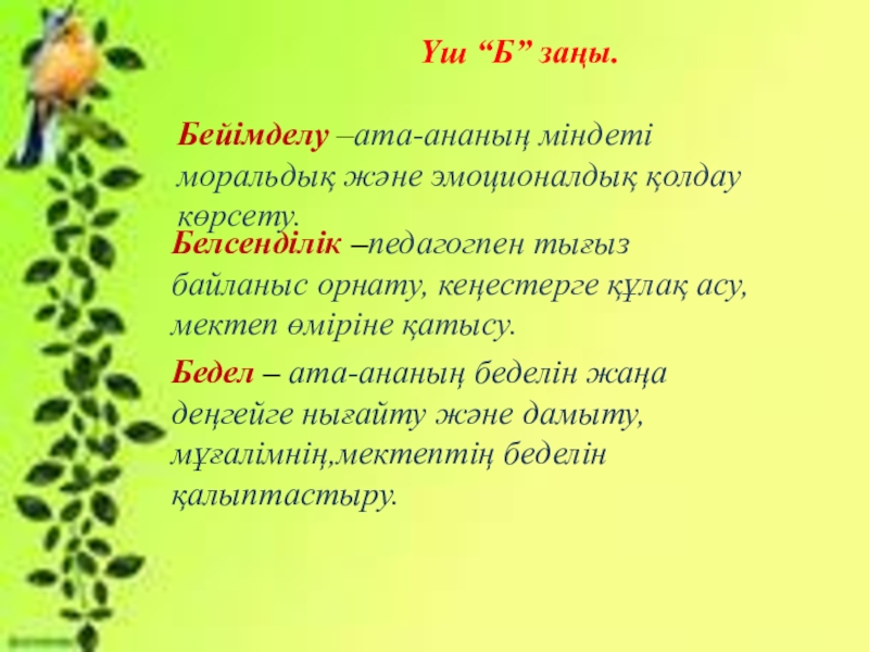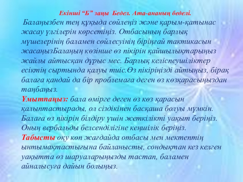 Слайд 10Екінші “Б” заңы Бедел. Ата-ананың беделі.