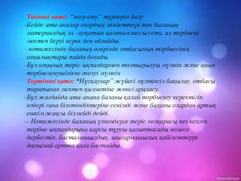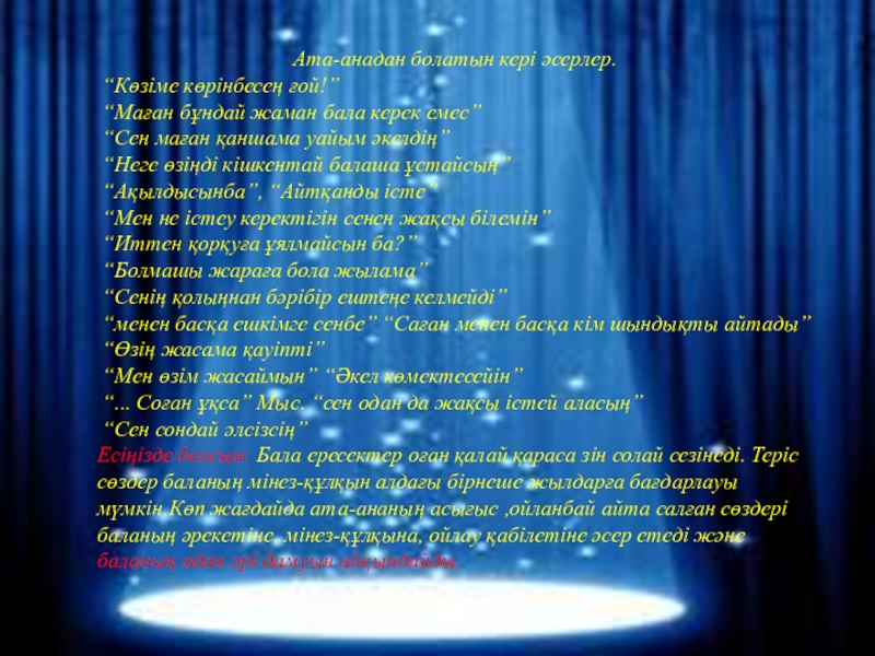 Слайд 14Ата-анадан болатын кері әсерлер.