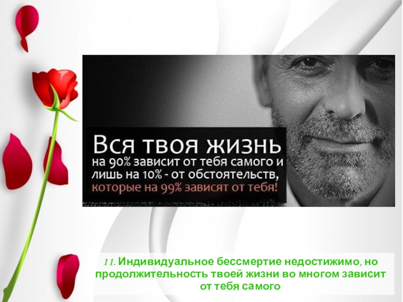 Слайд 2011. Индивидуальное бессмертие недостижимо, но продолжительность твоей жизни во многом зависит