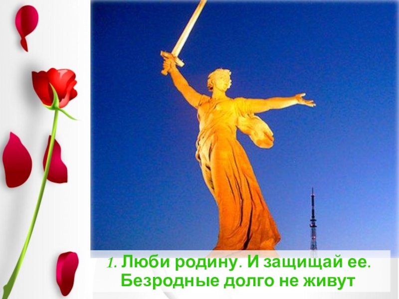Слайд 101. Люби родину. И защищай ее. Безродные долго не живут