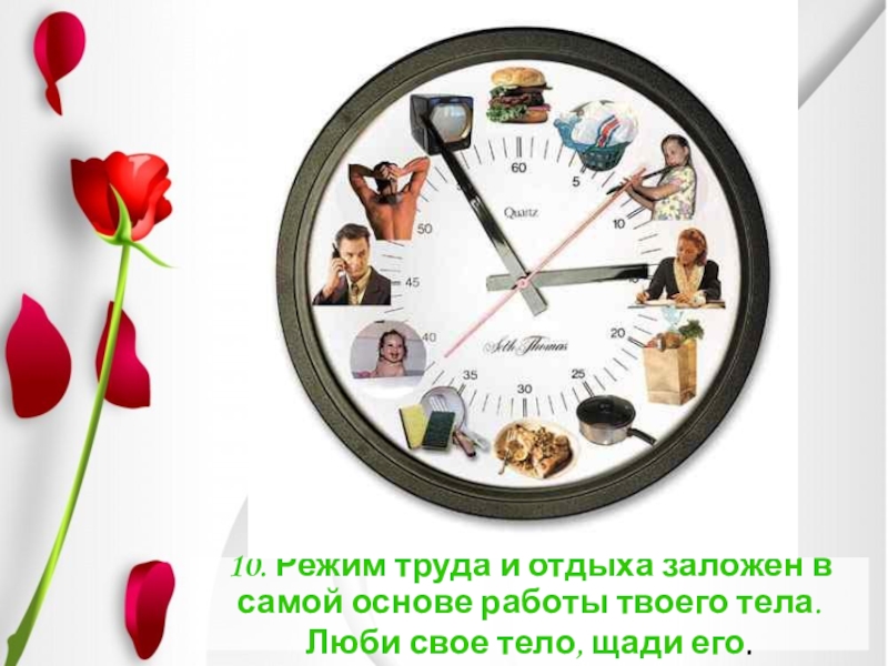 Слайд 1910. Режим труда и отдыха заложен в самой основе работы твоего