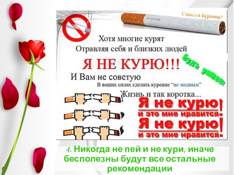 Слайд 134. Никогда не пей и не кури, иначе бесполезны будут все