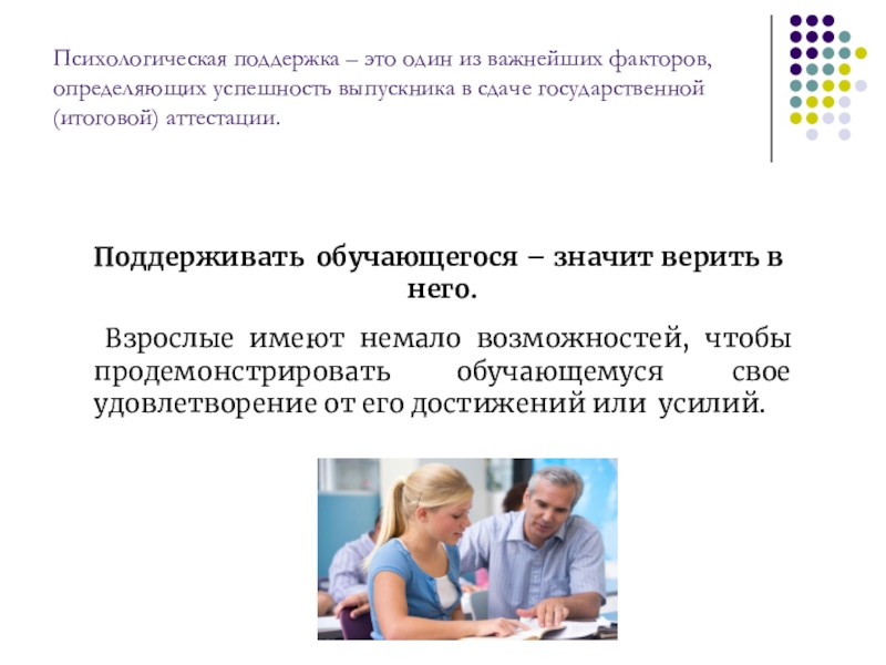 Психологическая поддержка – это один из важнейших факторов, определяющих успешность выпускника