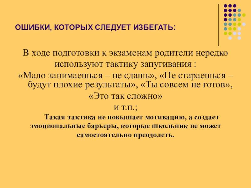 «Мало занимаешься – не сдашь», «Не стараешься – будут плохие результаты», «Ты совсем не готов»,