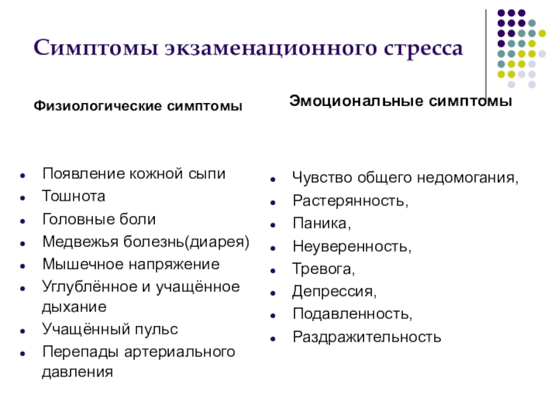 Слайд 4Симптомы экзаменационного стресса