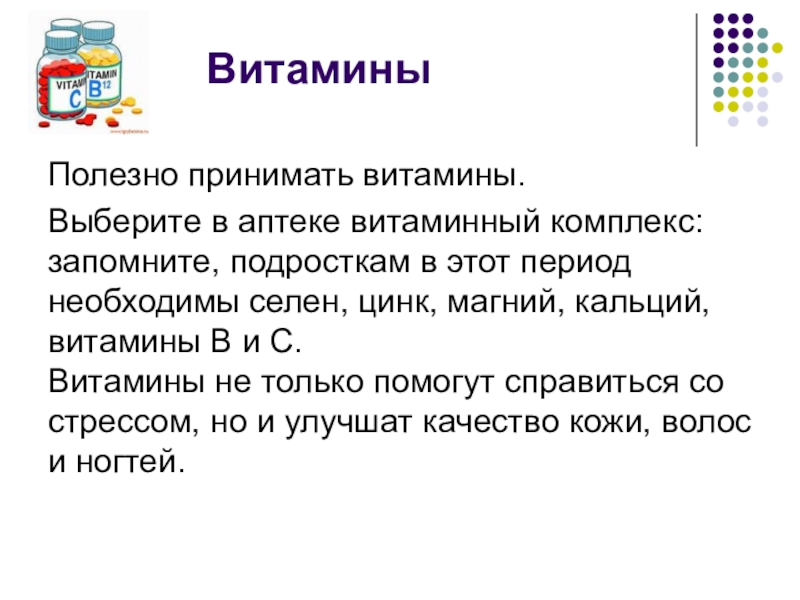 Полезно принимать витамины.