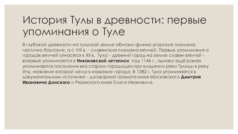 Слайд 2История Тулы в древности: первые упоминания о Туле