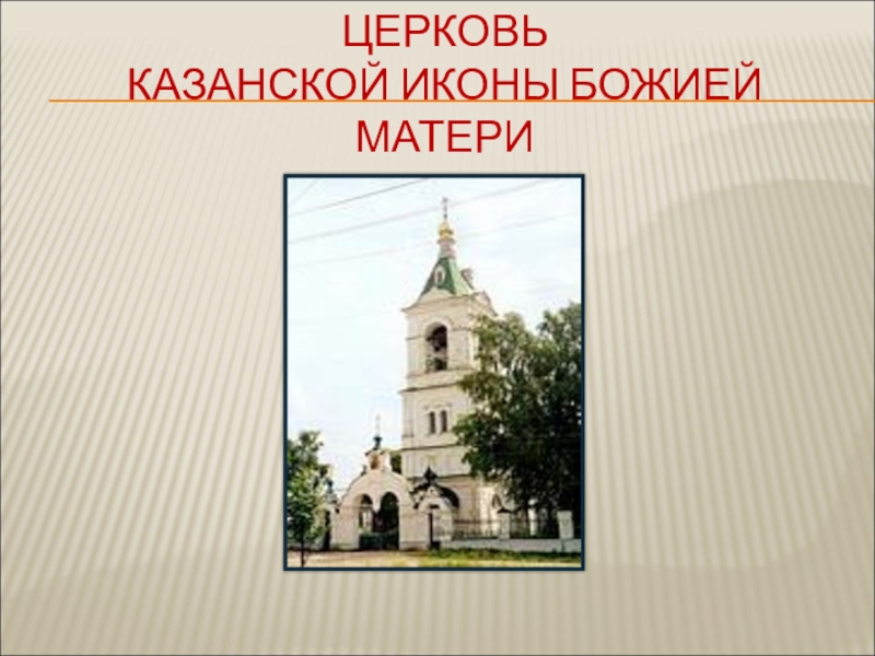 Слайд 10ЦЕРКОВЬ КАЗАНСКОЙ ИКОНЫ БОЖИЕЙ МАТЕРИ