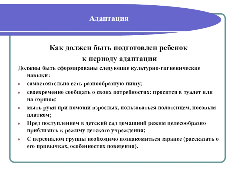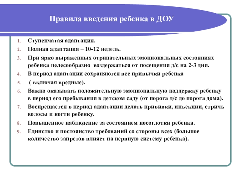 В период адаптации очень важно соблюдать следующие рекомендации: