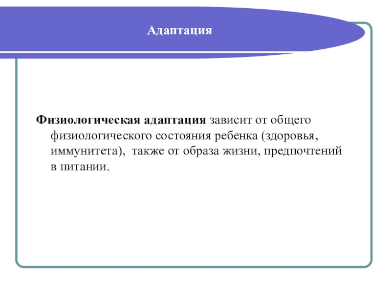Физиологическая адаптация зависит от общего физиологического состояния ребенка (здоровья, иммунитета), также