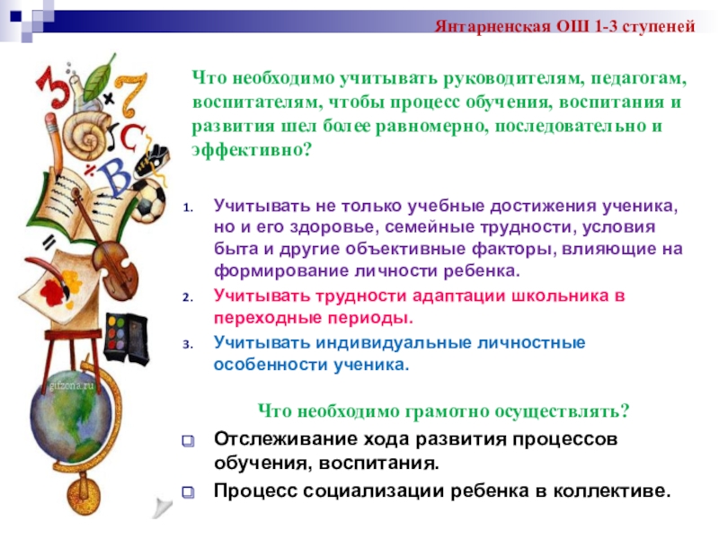 Учитывать не только учебные достижения ученика, но и его здоровье, семейные трудности, условия быта и другие объективные факторы, влияющие на формирование личности ребенка.