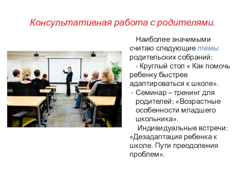 Слайд 10 Консультативная работа с родителями.