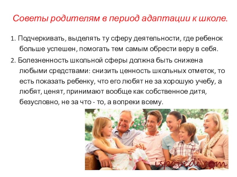 Слайд 11Советы родителям в период адаптации к школе.