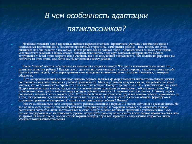 Слайд 4В чем особенность адаптации пятиклассников?