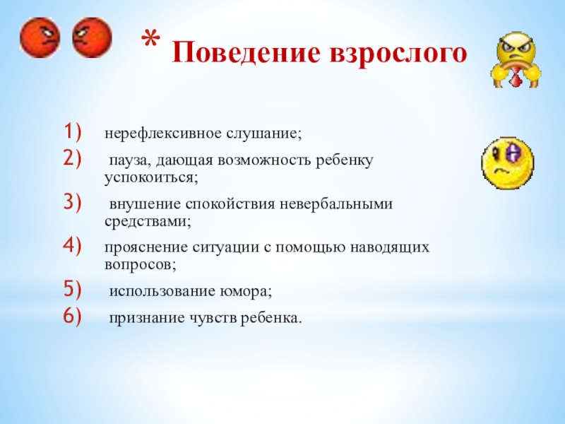 нежелательном поведении ребёнка и не впадать самому в агрессивное состояние;