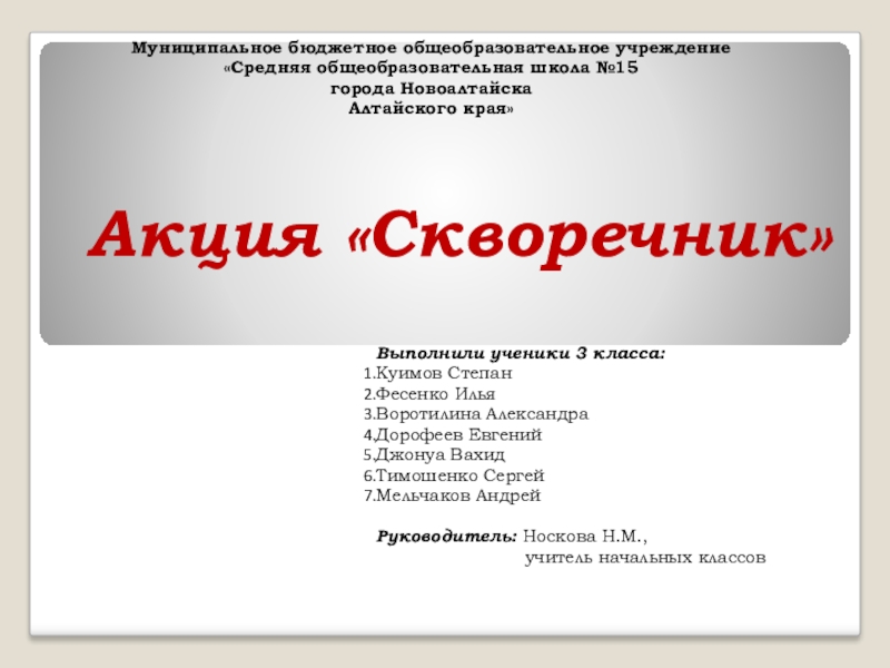 Руководитель: Носкова Н.М.,
