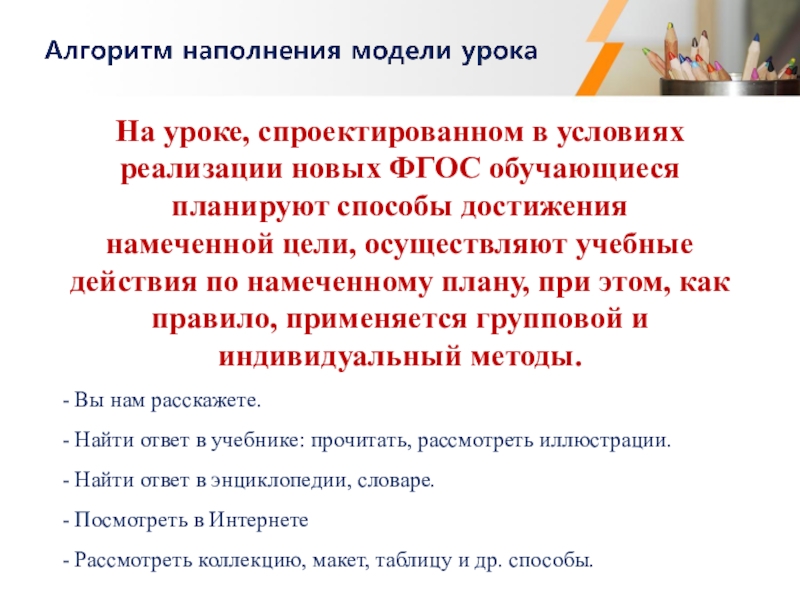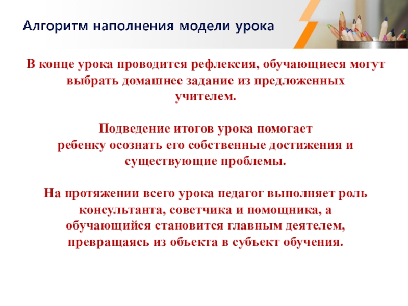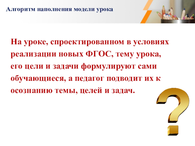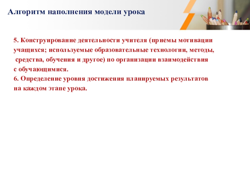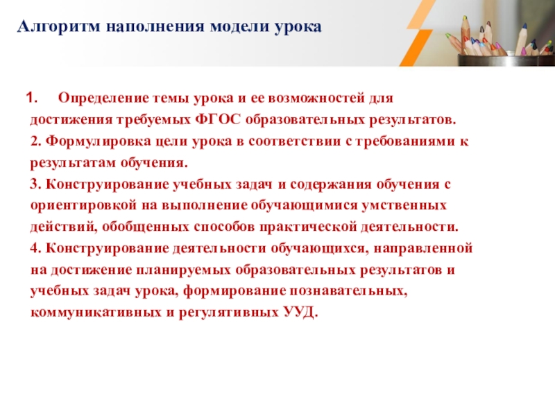 Алгоритм наполнения модели урока