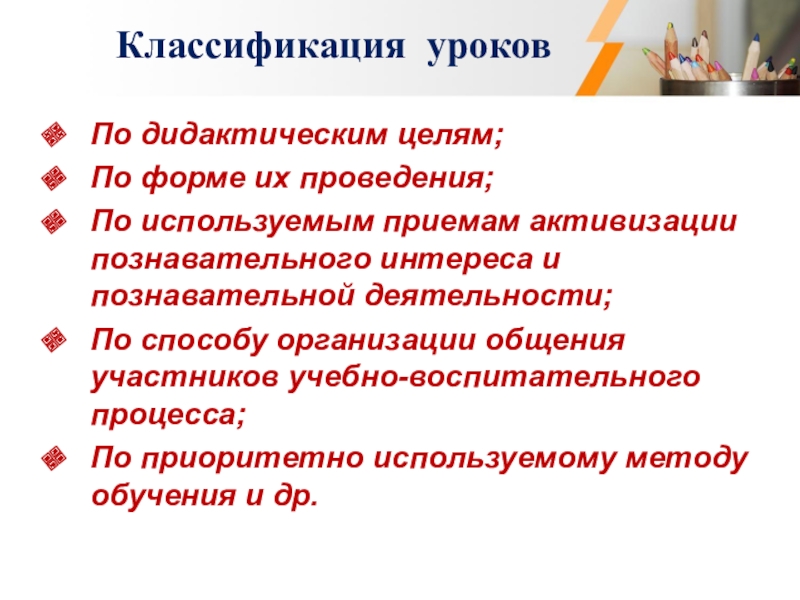 Классификация уроков