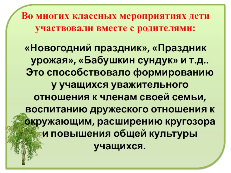 Слайд 15Во многих классных мероприятиях дети участвовали вместе с родителями:
