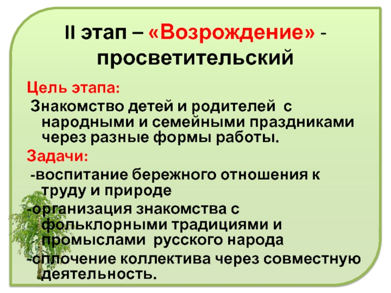 II этап – «Возрождение» - просветительский