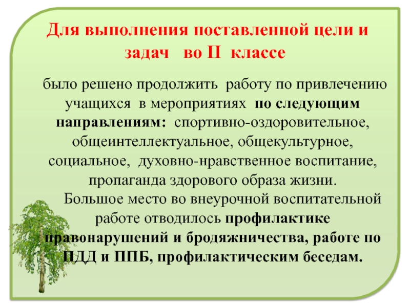 Слайд 9 Для выполнения поставленной цели и задач во II классе