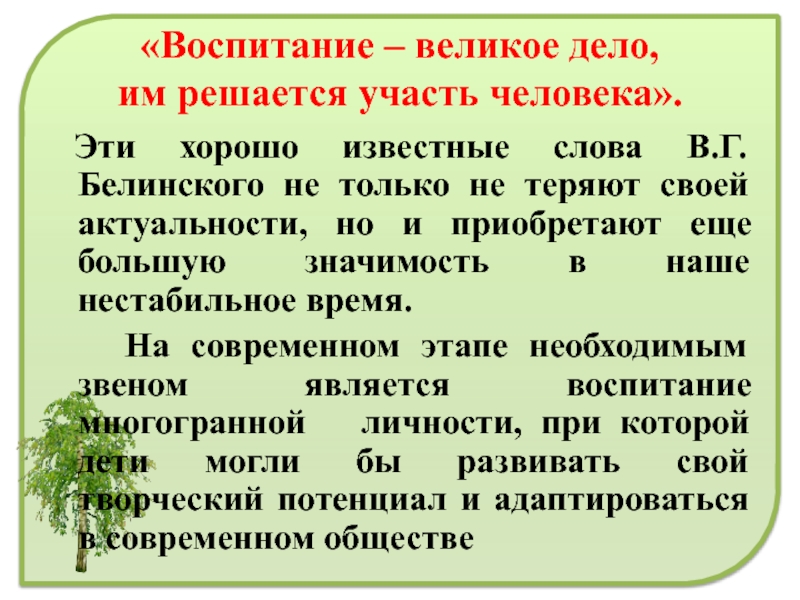 Слайд 6«Воспитание – великое дело,