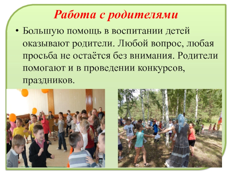 Слайд 11Работа с родителями