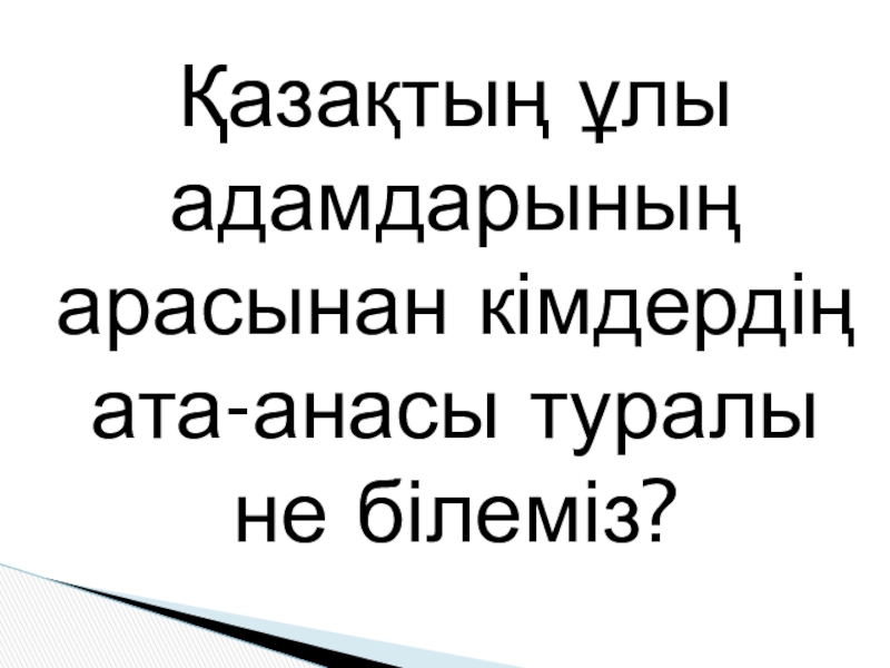 Слайд 5Қазақтың ұлы адамдарының арасынан кімдердің ата-анасы туралы не білеміз?