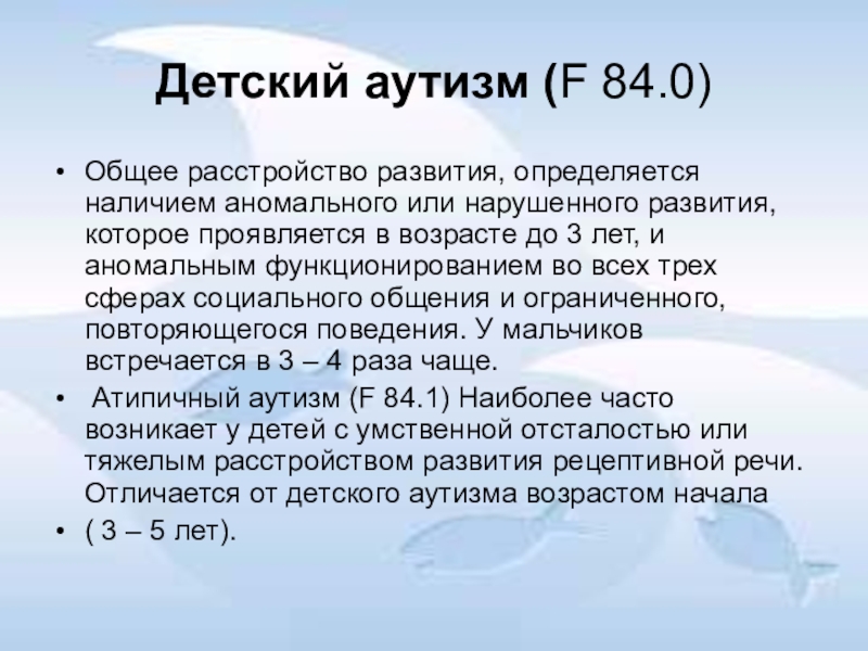 Слайд 10Детский аутизм (F 84.0)