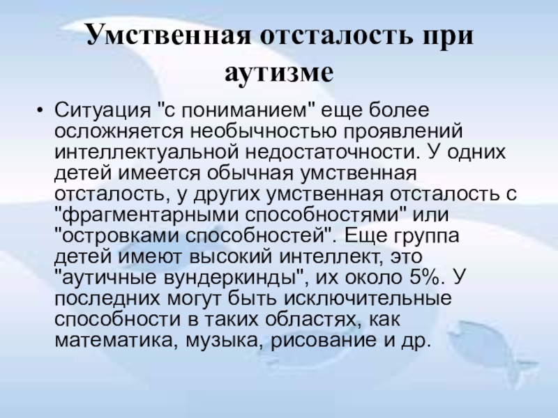 Слайд 27Умственная отсталость при аутизме