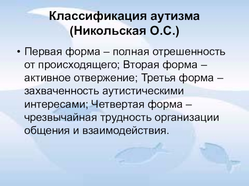 Слайд 15Классификация аутизма (Никольская О.С.)