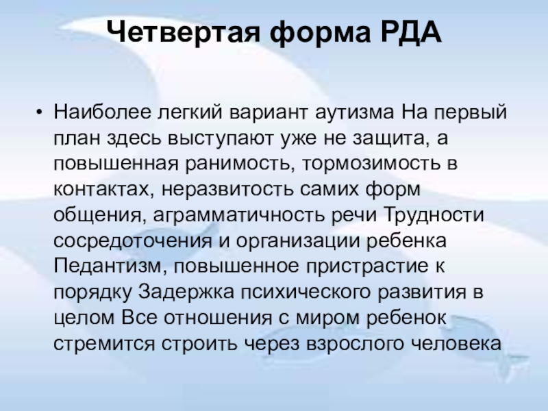 Наиболее легкий вариант аутизма На первый план здесь выступают