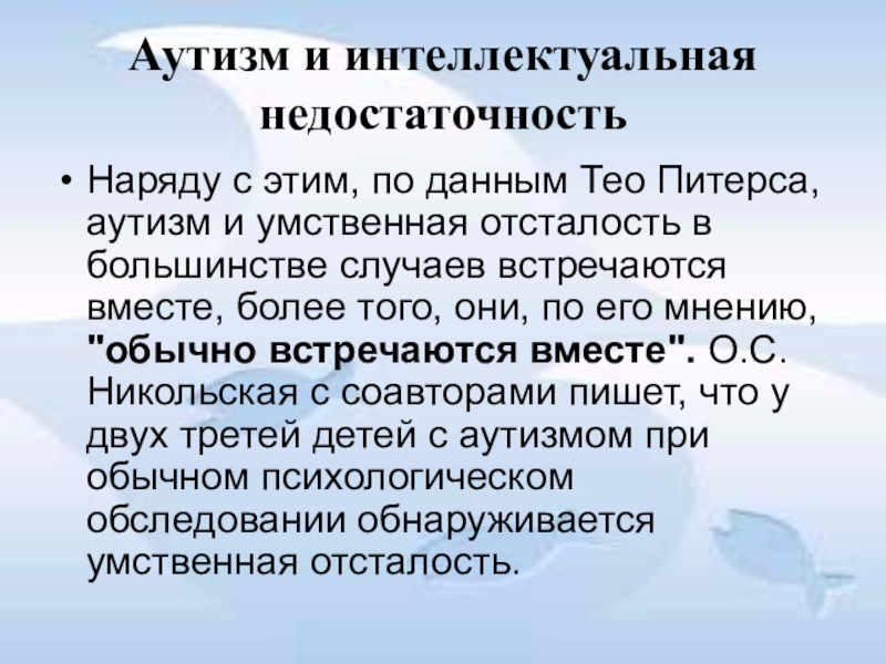 Слайд 24Аутизм и интеллектуальная недостаточность