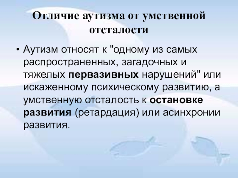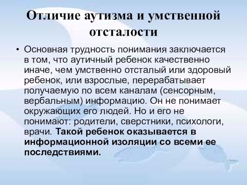 Слайд 23Отличие аутизма от умственной отсталости